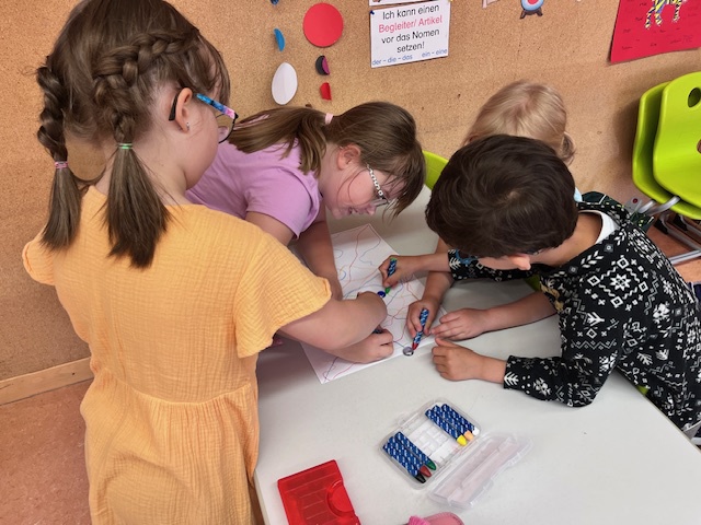 Dabei sind unsere Schüler besonders stolz, wenn sie zeigen dürfen, was sie schon alles gelernt haben oder wenn sie den neuen Schulkameraden etwas beibringen und bei den Aufgaben behilflich sein können.